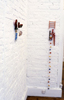 This organic order allows us to experience an emotional unifying process . The mingling with outside patterns, the respect of the garden’s geometry takes us on an indoor-outdoor “rusting journey”. Bobbie Fennick’s art escapes the definite forms of language, and becomes an art-in-process, an art-as-gestalt. Needless to say that in an Arte Povera way, Bobbie Fennick gives value the mobility of materials and structure. The rust, the wind, the city dust, the ageing process, every revolving element is there to highlight the fact that nothing is phenomenologically inert, static or even separated from other phenomena. This attitude vis-a-vis creation is not “environmentally conscious”. It has to do with fluidity and movement. It analyses the potential for change lying within all elements. A potential that constantly projects itself—not ahead nor backwards—but within time. We could compare Bobbie Fennick’s rusting steel with Beuys’ use of fat and its reaction to temperature. But her concept of movement within what is static is other. It refers more to the Heideggerian ontological “da-sein” (being-there), which gives elements a time-span intentionality. The movement of a leaf falling from a tree or the stains of rust on the paving stones are in themselves that intentionality. They are individual projections within a world of projections. However, Bobbie Fennick doesn’t load the materials she uses with anthropomorphic or ontological dimensions; she pushes us to see the changes that occur in seemingly inanimate elements, freeing them and us from the terror of objective reductionism and lifting them to the status of charged elements.
